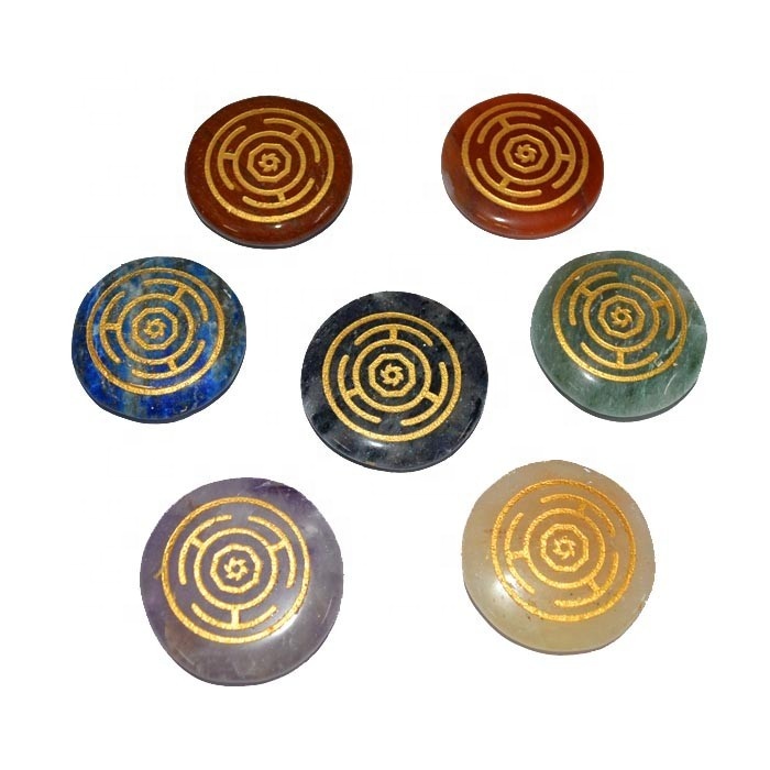 Seven Chakra Engraved Holistic Balancing Polished Reiki Healing Solids Crystal Mens Chakra Symbols Tumbled Palm Stone Sets Kit